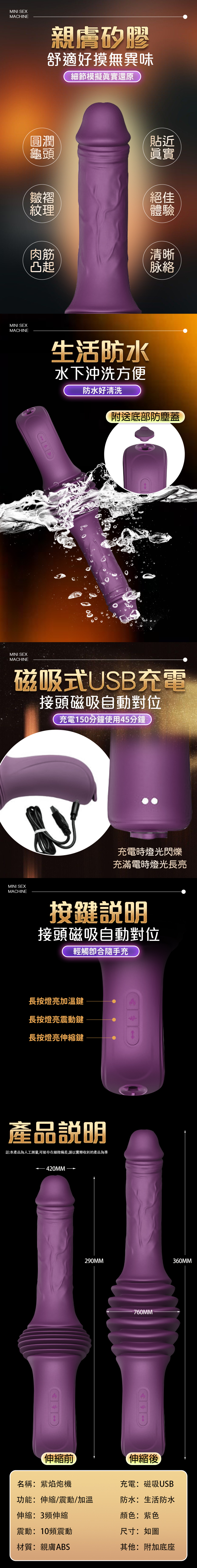 名稱:紫焰炮機|伸縮抽插震動|情趣按摩棒